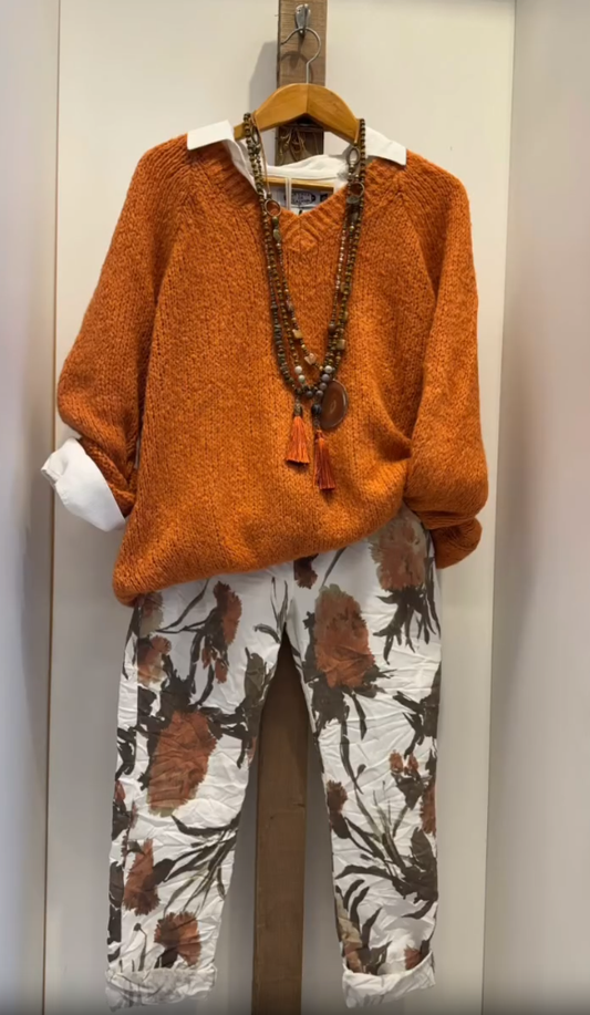 Damski, codzienny garnitur, koszula, sweter i spodnie