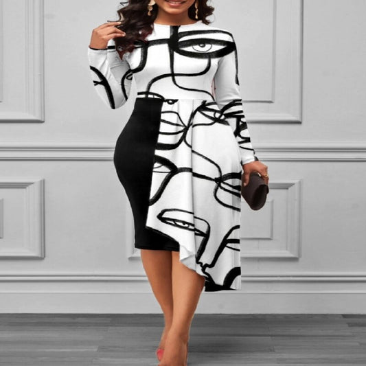2023 wiosenna i jesienna nowa odzież damska Amazon jednokolorowa spódnica z dzianiny wokół szyi moda dojazdy do pracy sukienka z rozcięciem kobiet