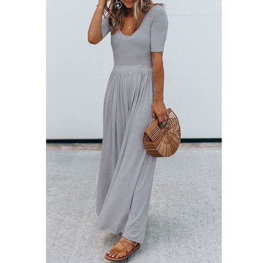 2023 nowy długi kombinezon z okrągłym dekoltem i krótkimi rękawami