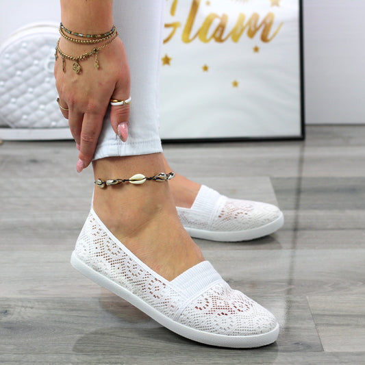 Białe Wygodne Koronkowe Trampki Tenisówki Gumka