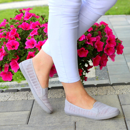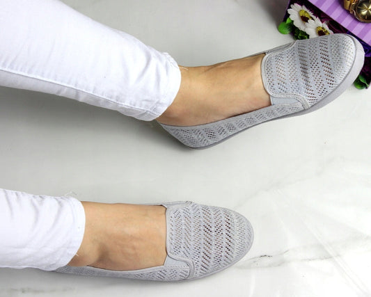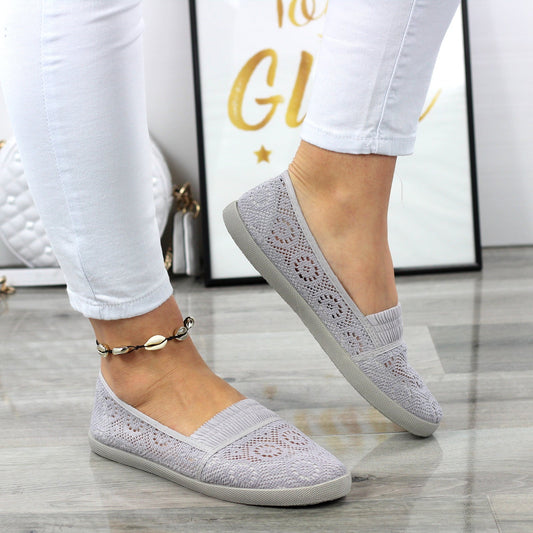 Szare Wygodne Koronkowe Trampki Tenisówki Gumki