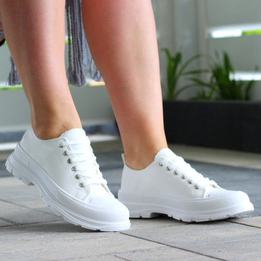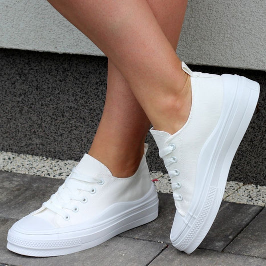 BIAŁE TENISÓWKI TRAMPKI DAMSKIE GŁADKIE GRUBA PODESZWA