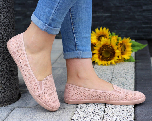 Pudrowy Róż Wygodne Koronkowe Trampki Tenisówki