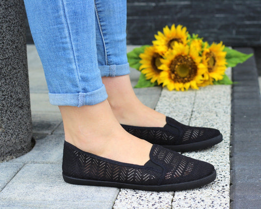 CZARNE ELASTYCZNE TENISÓWKI TRAMPKI DAMSKIE WSUWANE