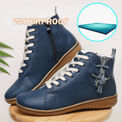 Damskie skórzane buty ortopedyczne z okrągłym noskiem i bocznym zamkiem błyskawicznym👢