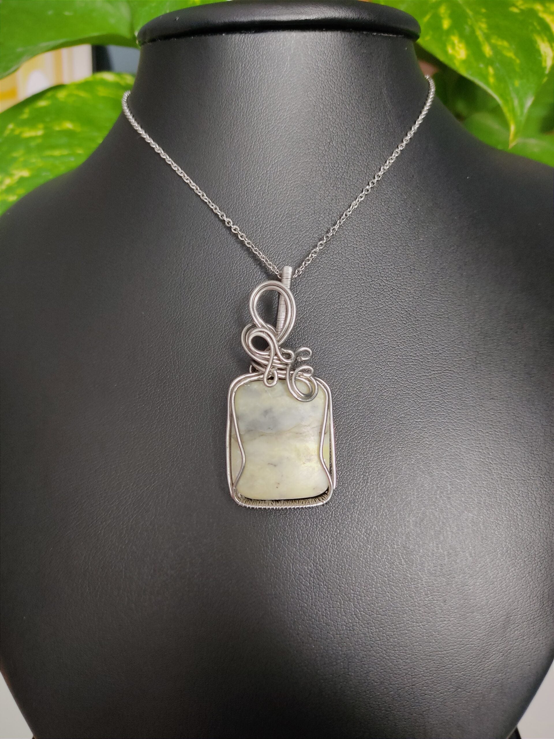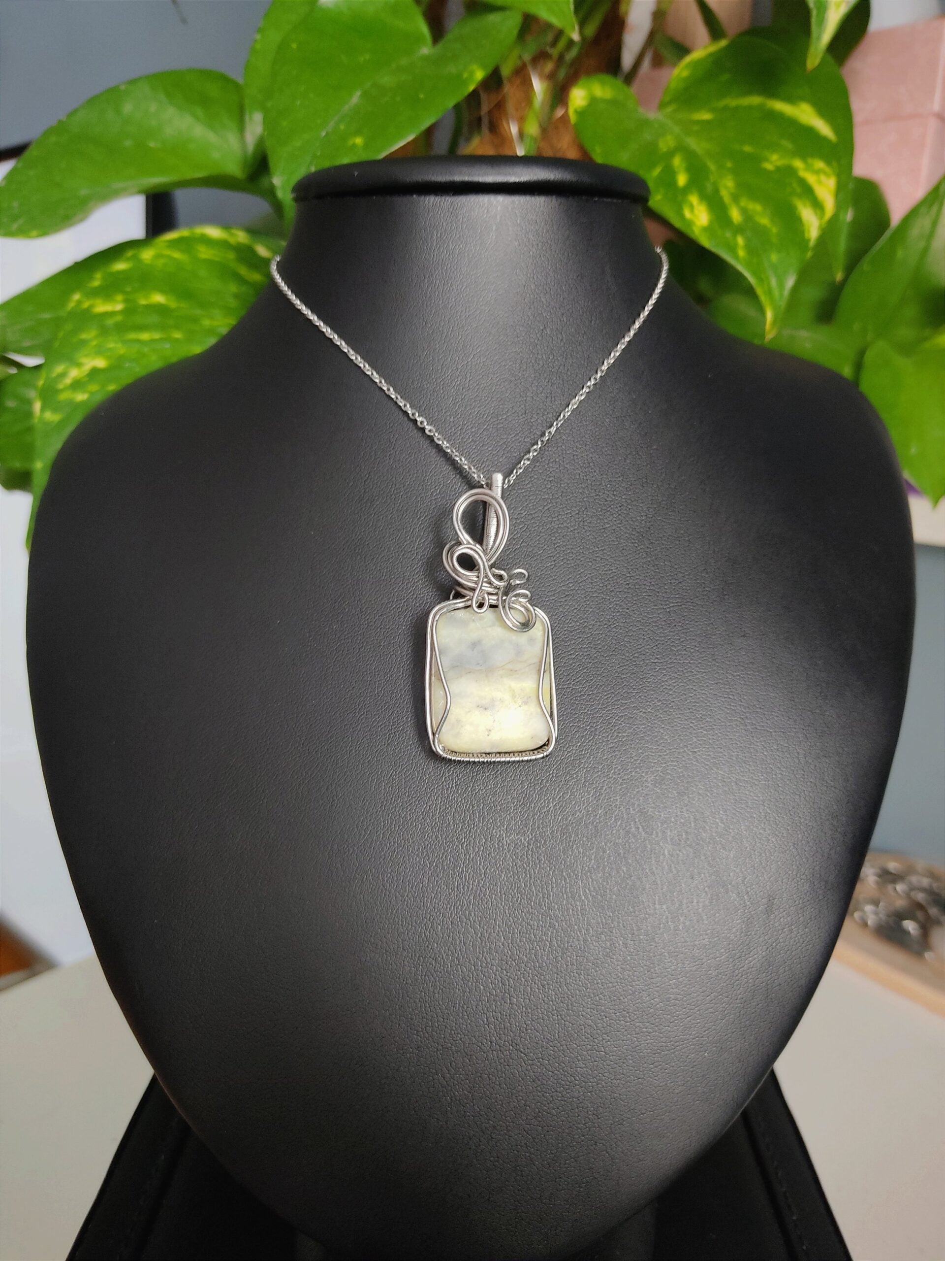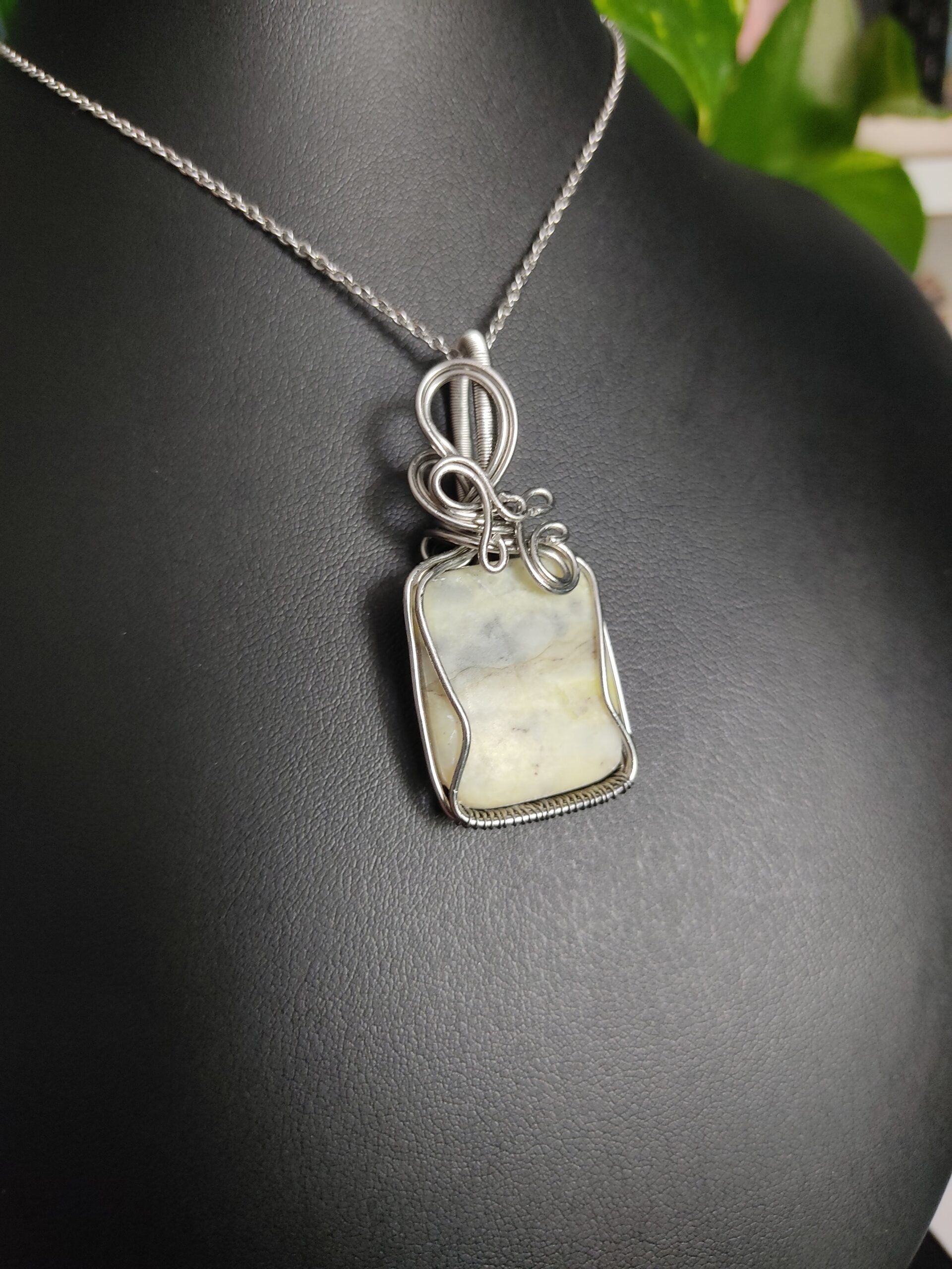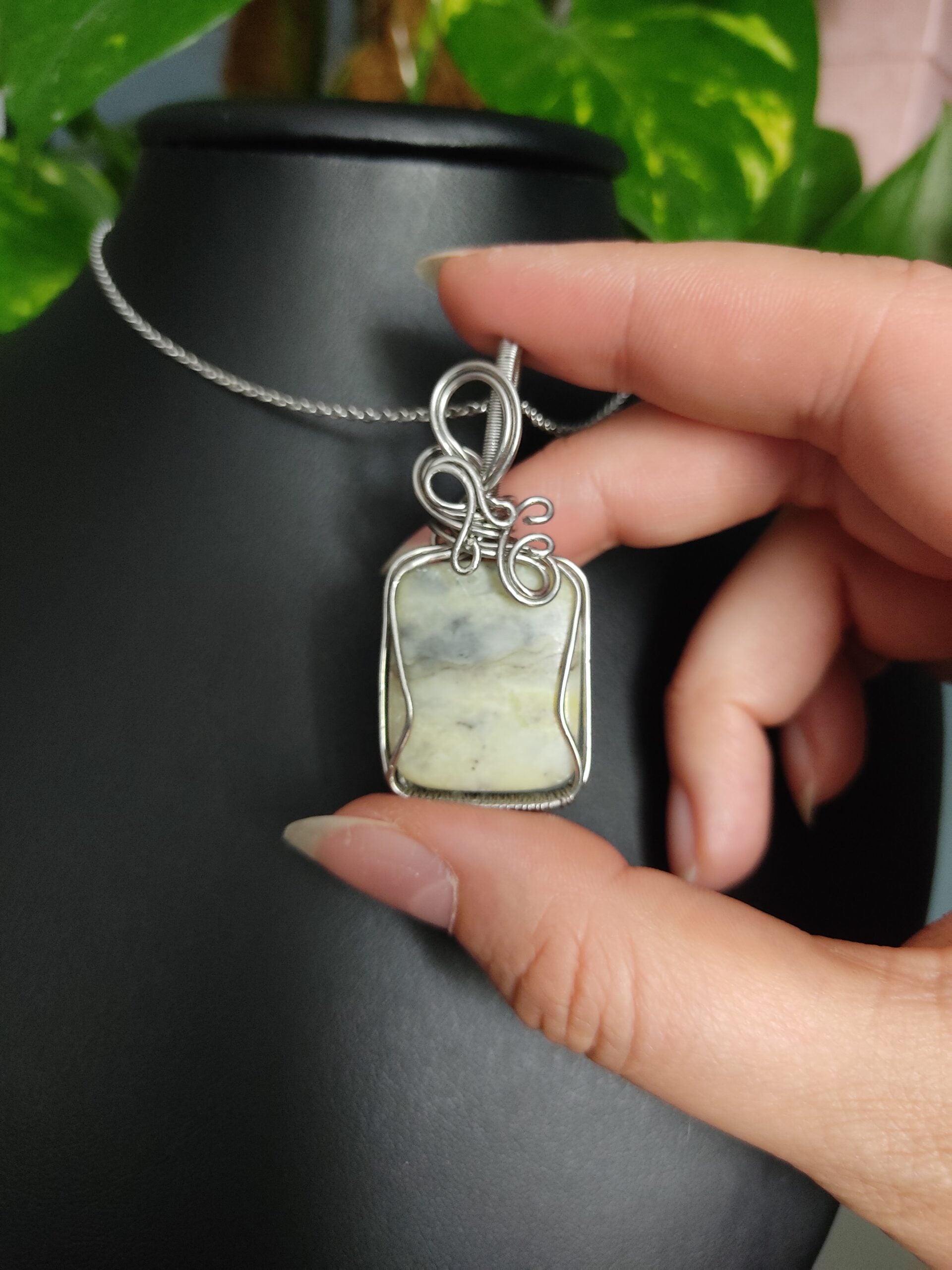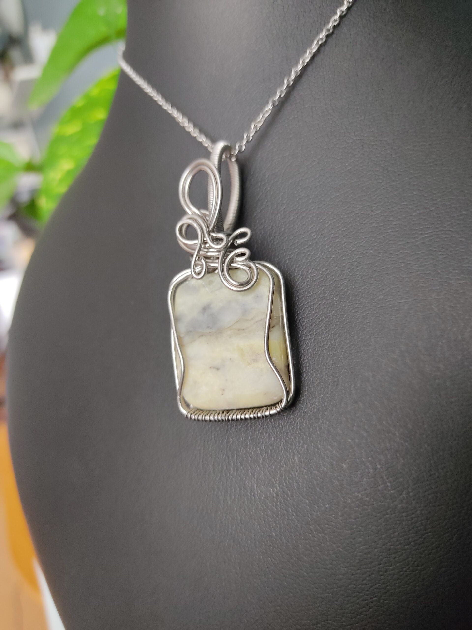 Ręcznie robiony wisiorek z agatem. Wykonany techniką wire wrapping z drutów ze stali chirurgicznej.