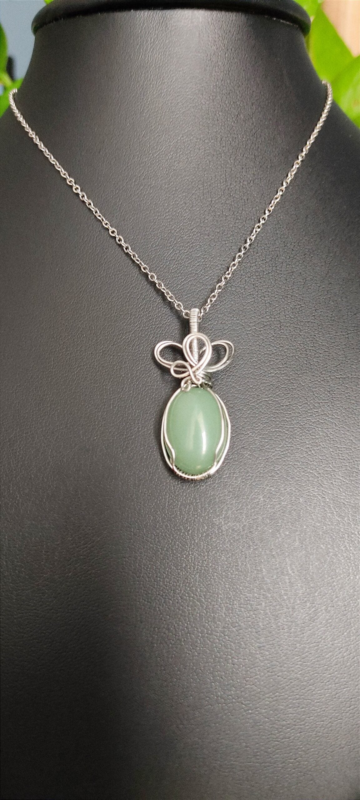 Ręcznie robiony wisiorek z awenturynem. Wykonany techniką wire wrapping z drutów ze stali chirurgicznej.