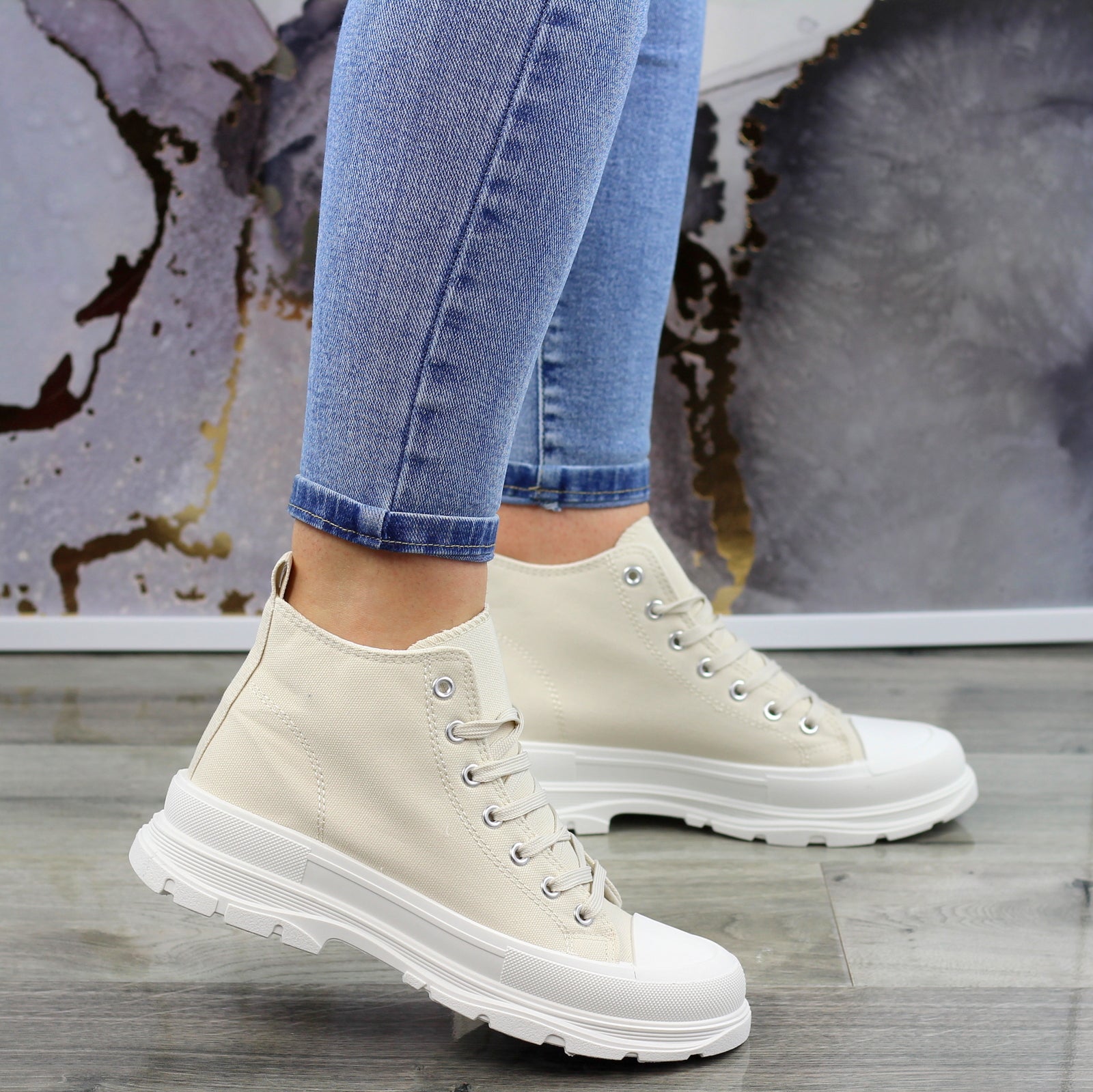 BEŻOWE WYŻSZE SZNUROWANE TRAMPKI DAMSKIE STAR
