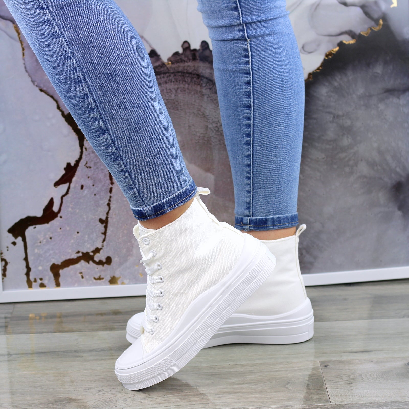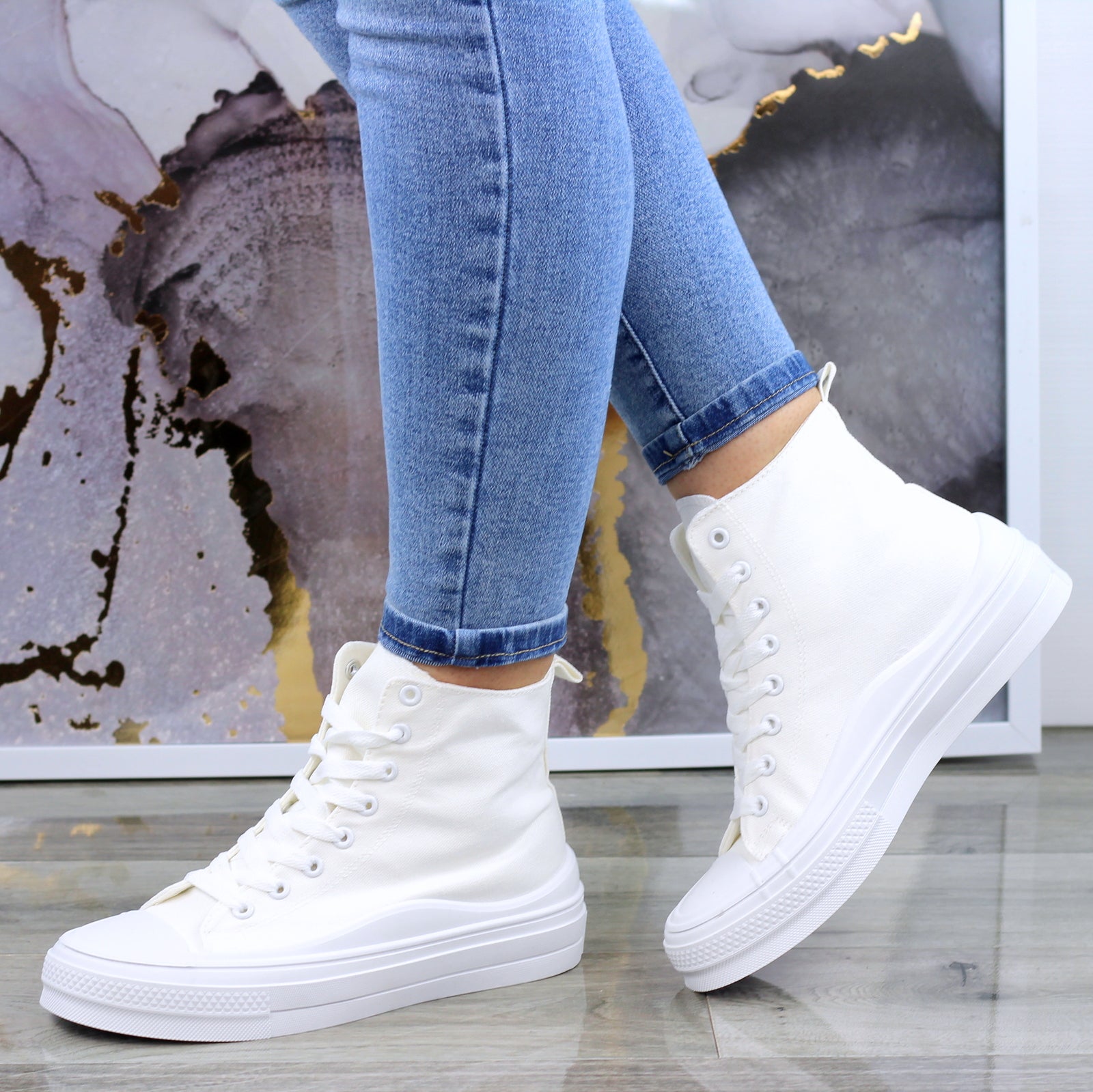 BIAŁE DŁUGIE TRAMPKI DAMSKIE NA GRUBEJ PODESZWIE