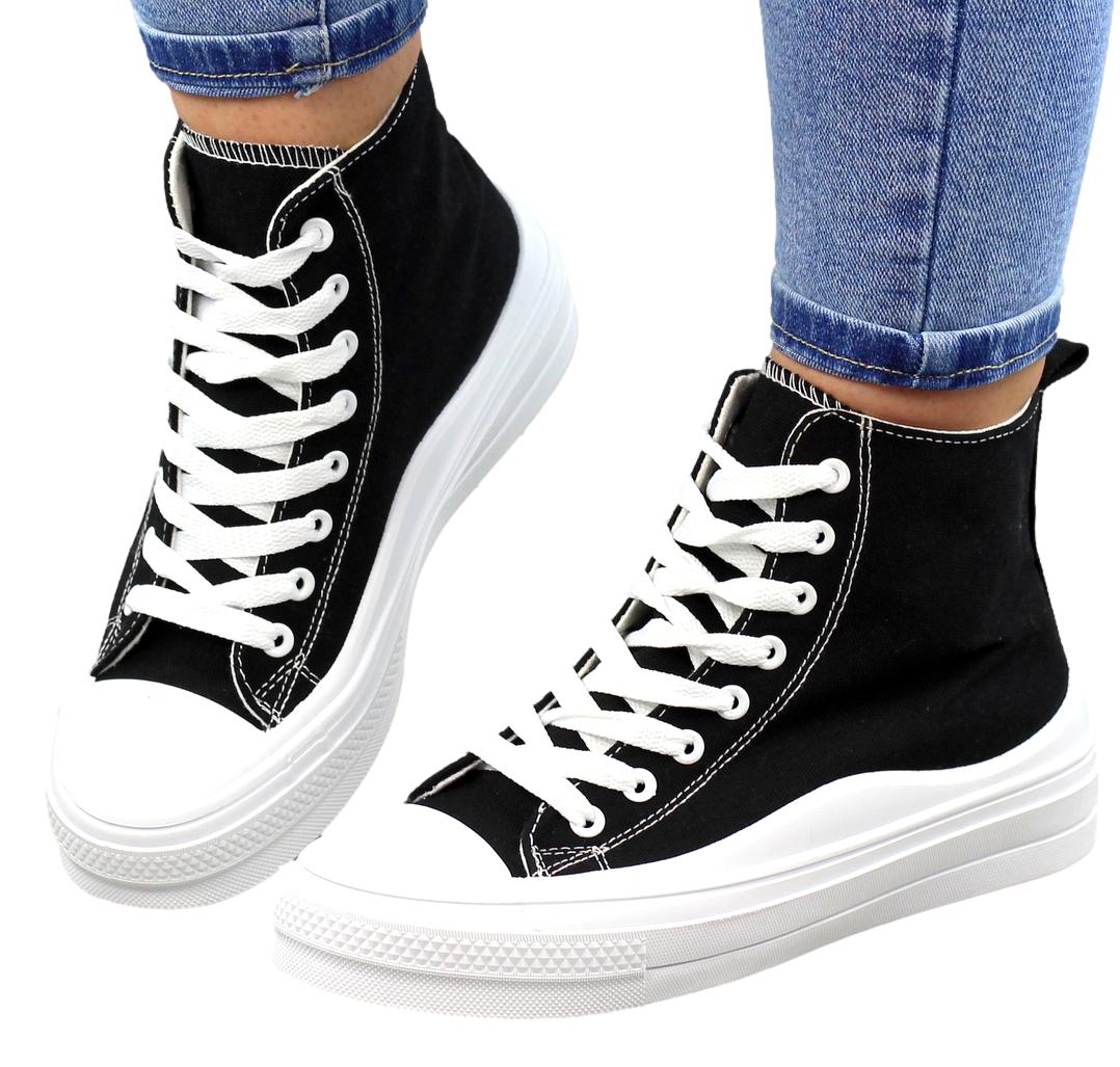 CZARNE DŁUGIE TRAMPKI DAMSKIE NA GRUBEJ PODESZWIE