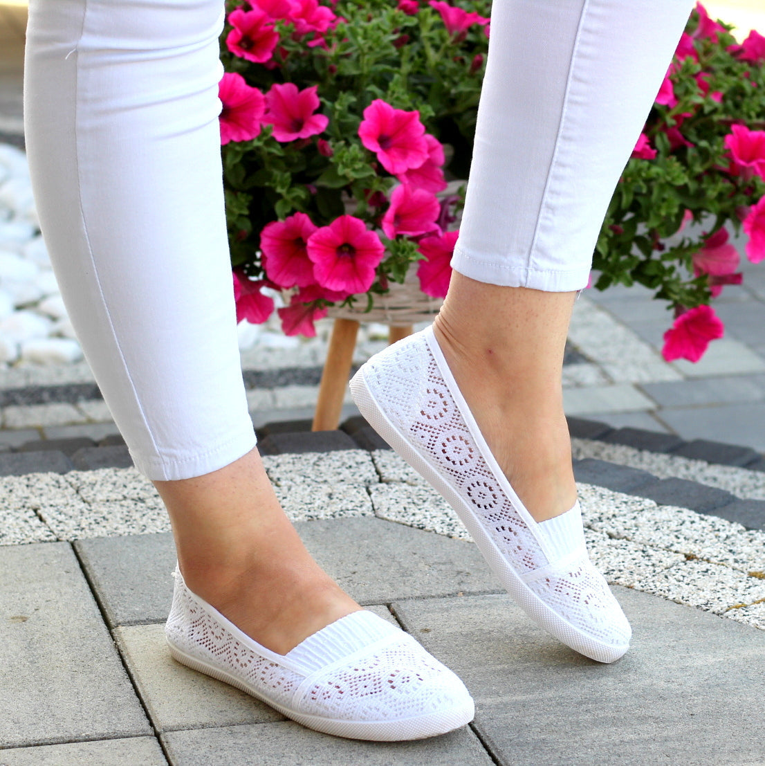 BIAŁE TENISÓWKI KORONKOWE NA LATO