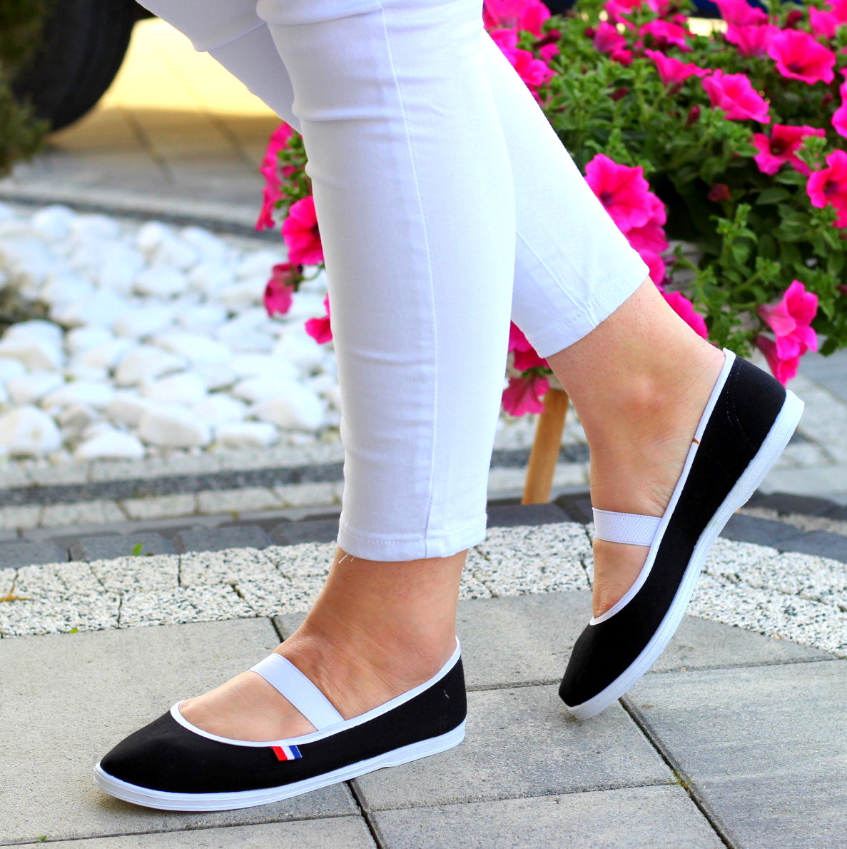 CZARNE TENISÓWKI PŁASKIE CZESZKI NA GUMKĘ