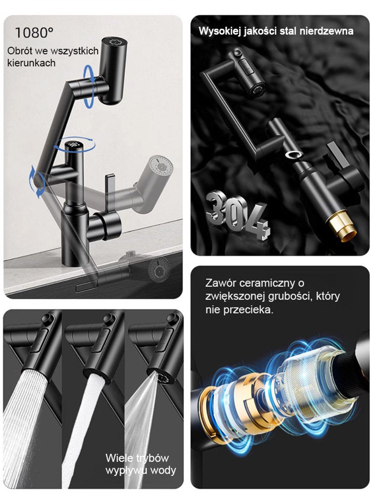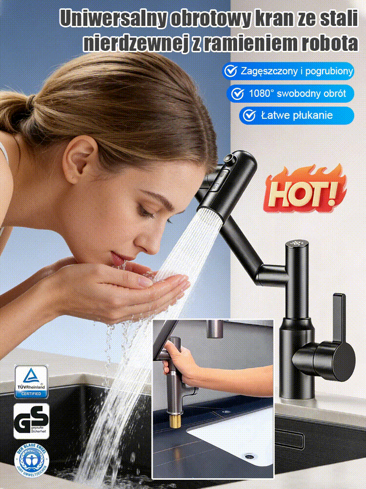 Nowo zmodernizowana obrotowa bateria ze stali nierdzewnej z ramieniem mechanicznym.