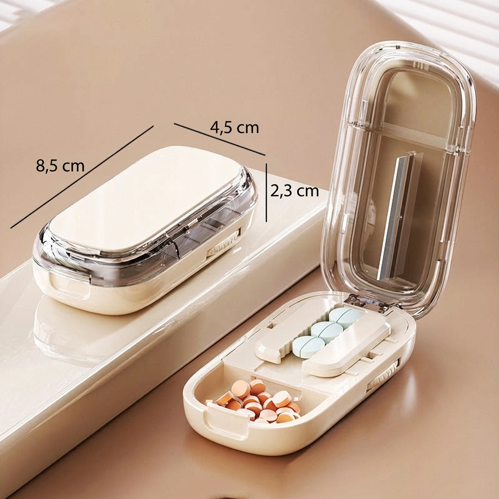 Przenośny pojemnik na tabletki z nożem
