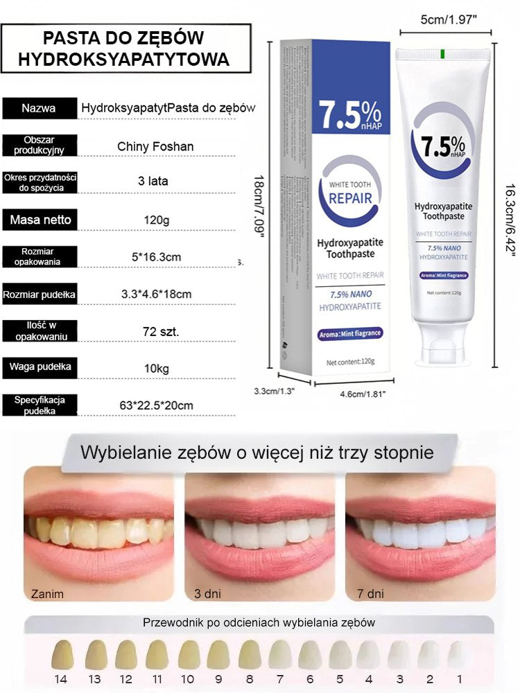 【Problemy z zębami znikają po jednym szczotkowaniu】Pasta do zębów z hydroksyapatytem