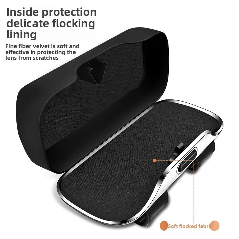 Elegancki schowek na okulary przeciwsłoneczne z osłoną przeciwsłoneczną nie tylko pomieści Twoje okulary, ale będzie również piękną ozdobą. Wbudowana pluszowa wyściółka lepiej chroni okulary.