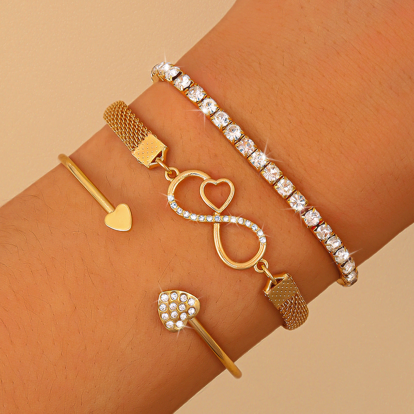 Ten trzyczęściowy zestaw złotych bransoletek w stylu boho idealnie łączy elegancję, glamour i styl, zapewniając niezapomniany wygląd na każdą okazję. Bransoletki dodadzą odrobinę luksusu każdej stylizacji. Niezależnie od tego, czy wybierasz się na wieczorne wyjście, czy chcesz podkreślić swój swobodny look, te bransoletki sprawią, że będziesz w centrum uwagi.