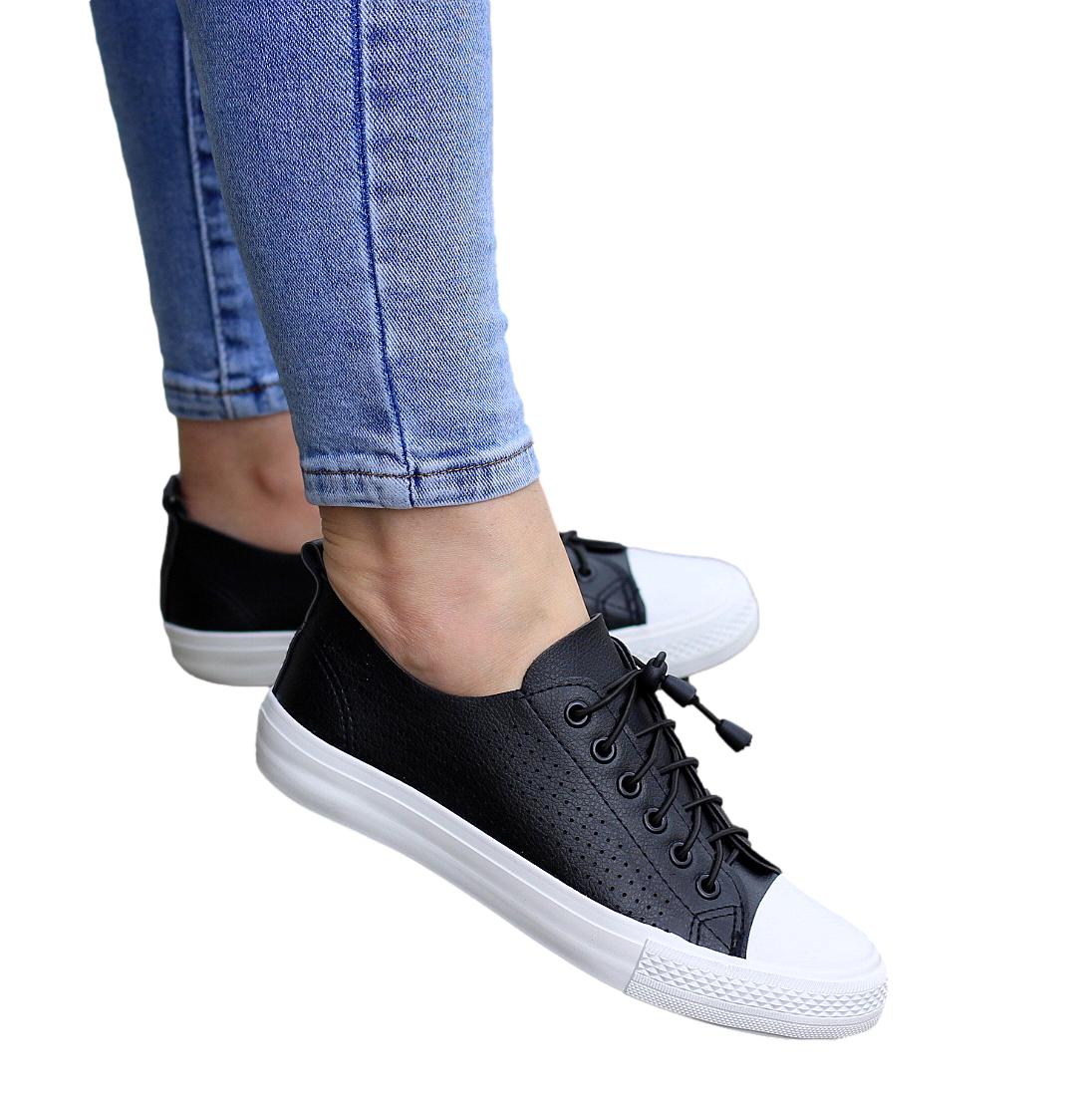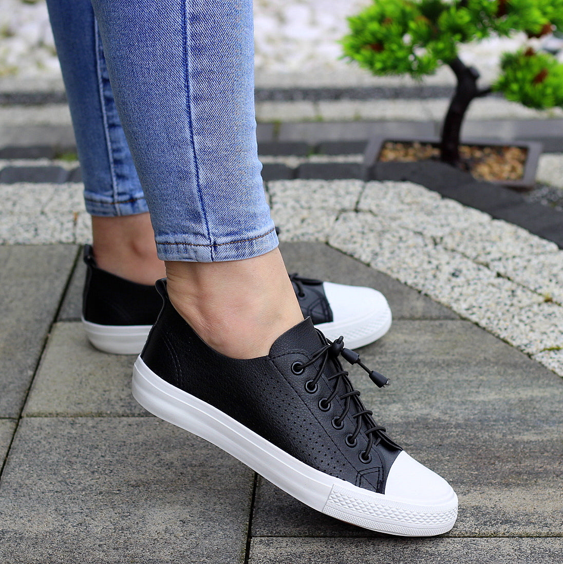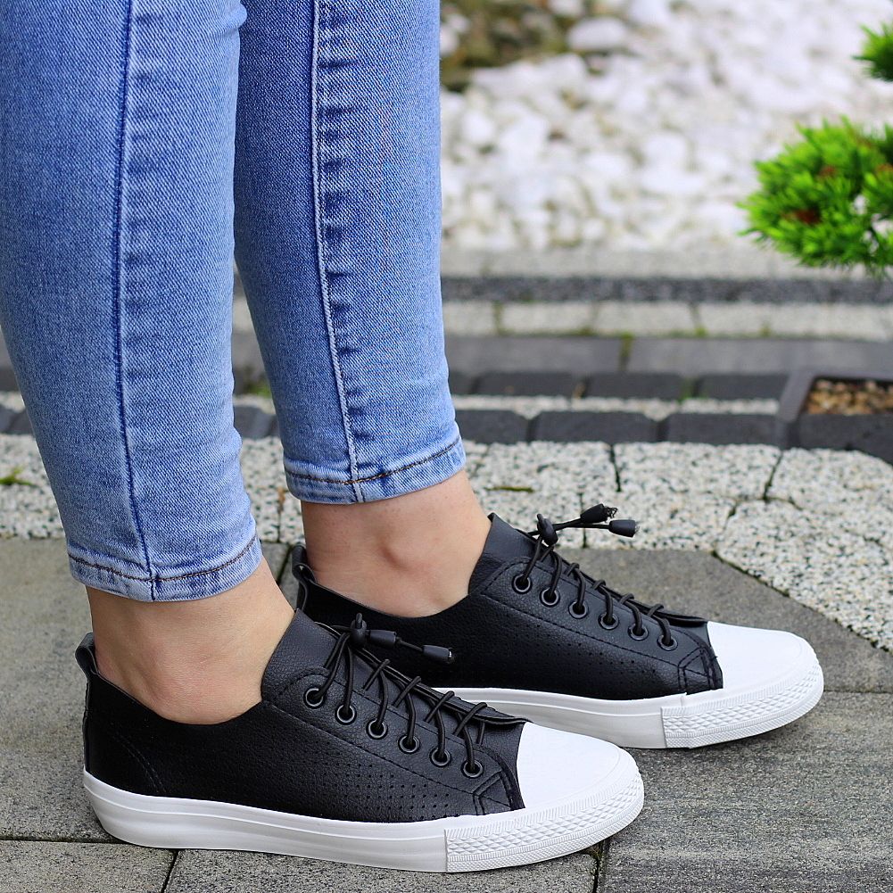 Czarne trampki w dziurki mięciutkie sznurowane slim na wygodnej podeszwie .