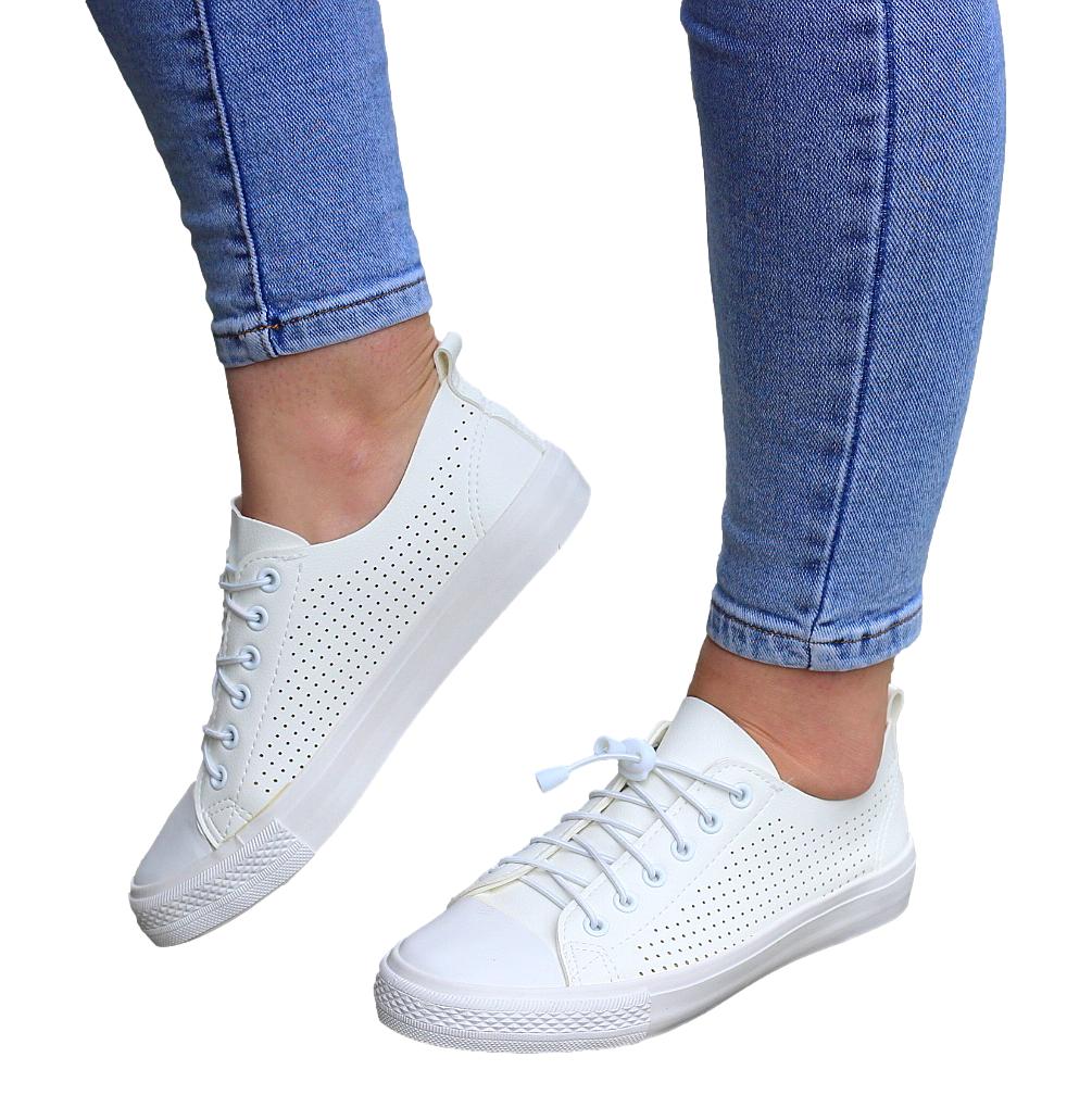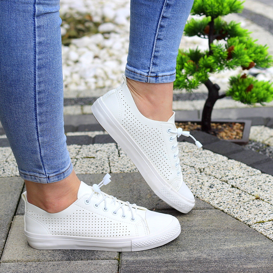 Białe trampki w dziurki mięciutkie sznurowane slim na wygodnej podeszwie .