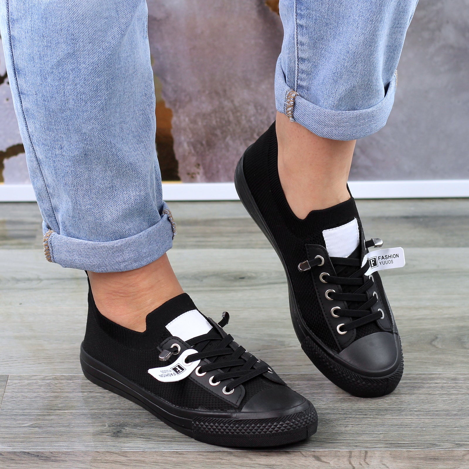 Czarne trampki mięciutkie sznurowane slim na wygodnej podeszwie wykonane z mięciutkiej elastycznej tkaniny.