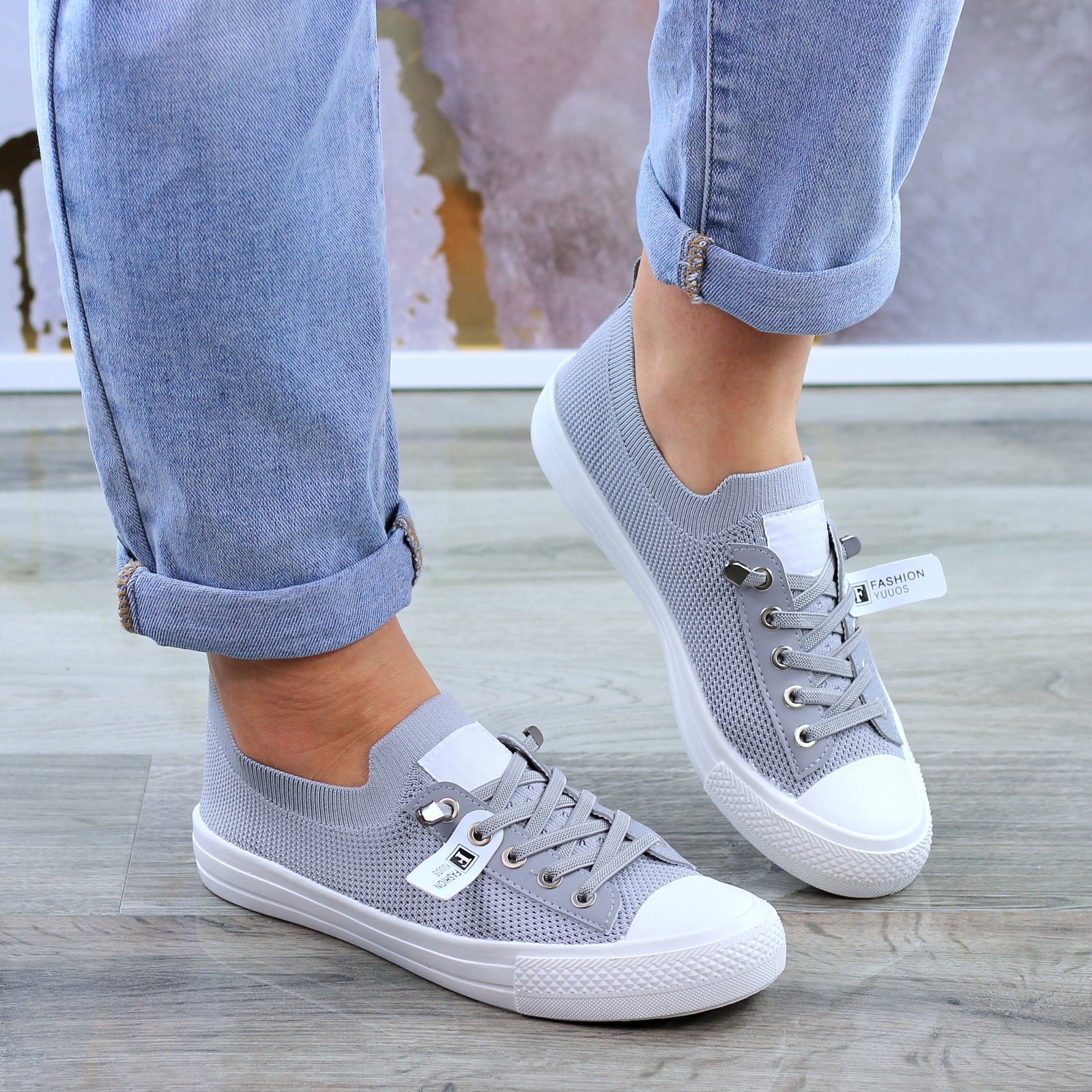 Szare trampki mięciutkie sznurowane slim na wygodnej podeszwie wykonane z mięciutkiej elastycznej tkaniny.