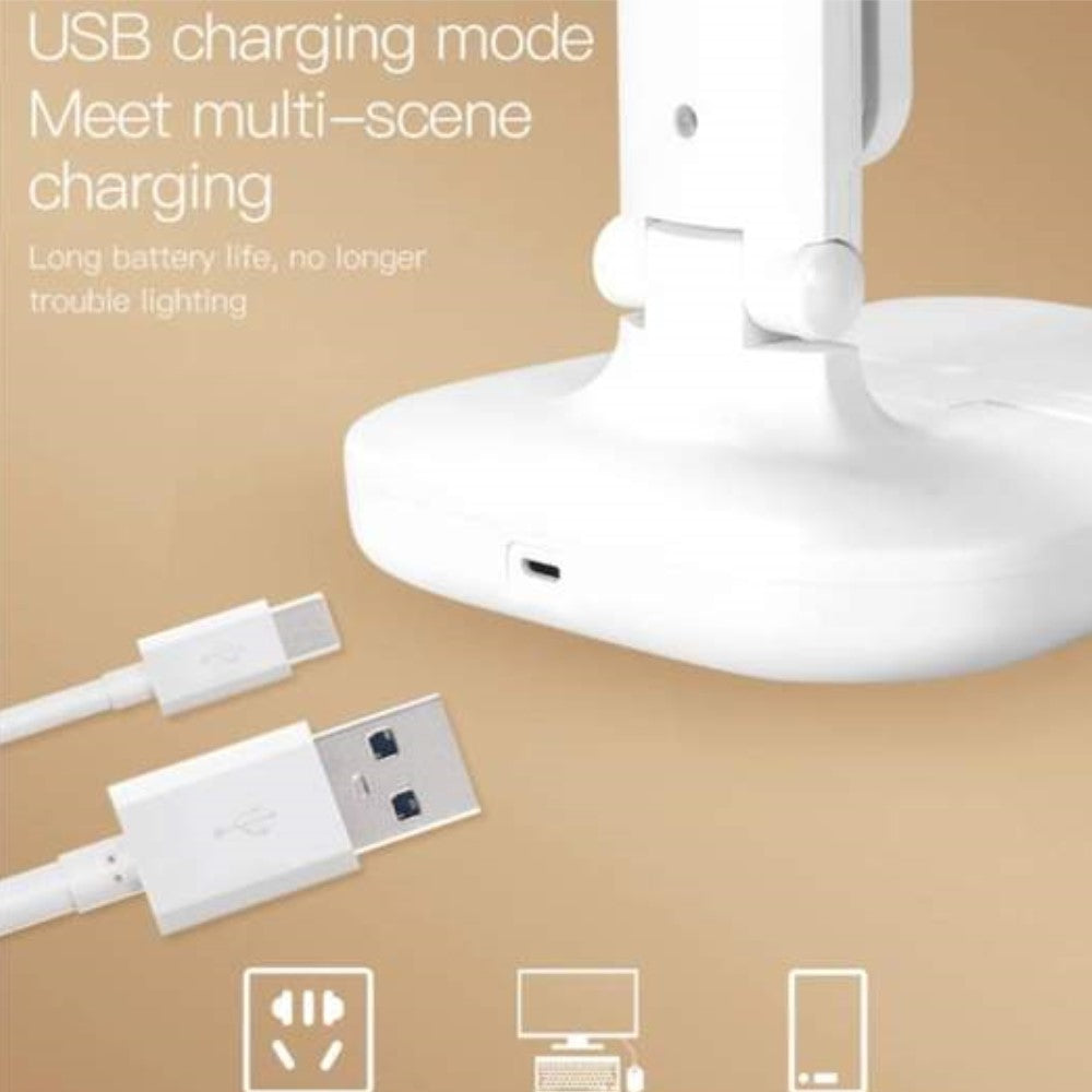 Lampa z możliwością ładowania za pomocą portu USB: Wyposażony w uniwersalny kabel do ładowania USB, więc ta mała lampa stołowa może być ładowana za pośrednictwem adaptera USB, power banku, laptopa podczas pracy, a tym samym zaoszczędzić trochę czasu oczekiwania.