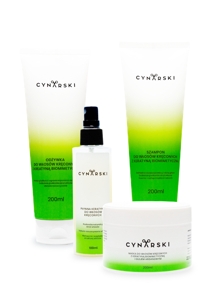 PS Płynna keratyna będzie idealnie współgrać z pozostałymi kosmetykami do włosów kręconych CYNARSKI!