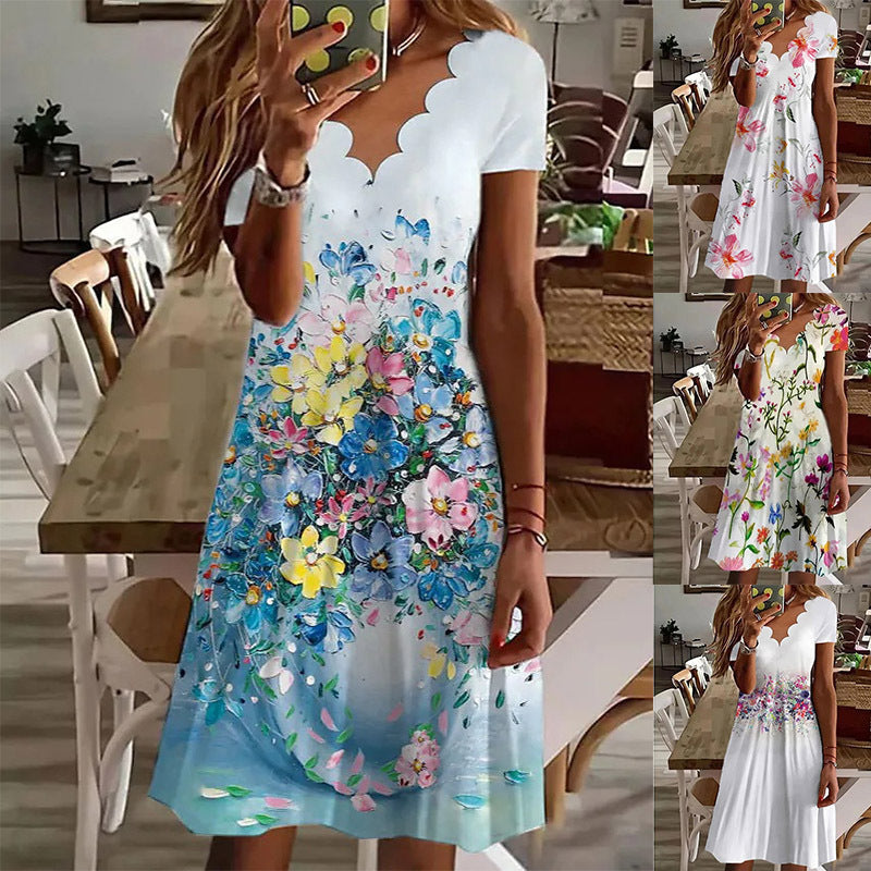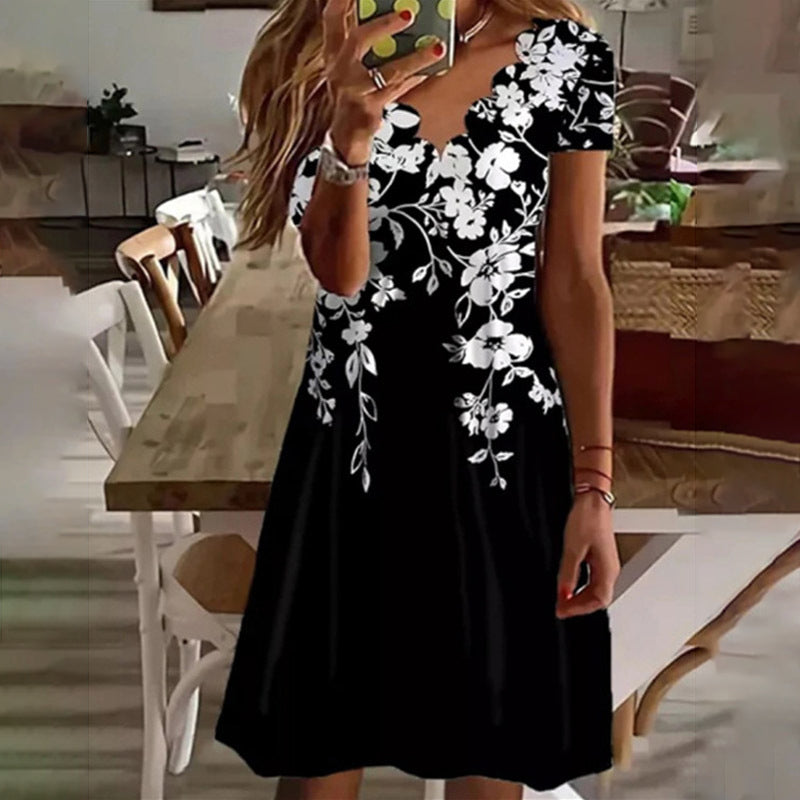 Sukienka z krótkim rękawem z nadrukiem w kształcie litery V