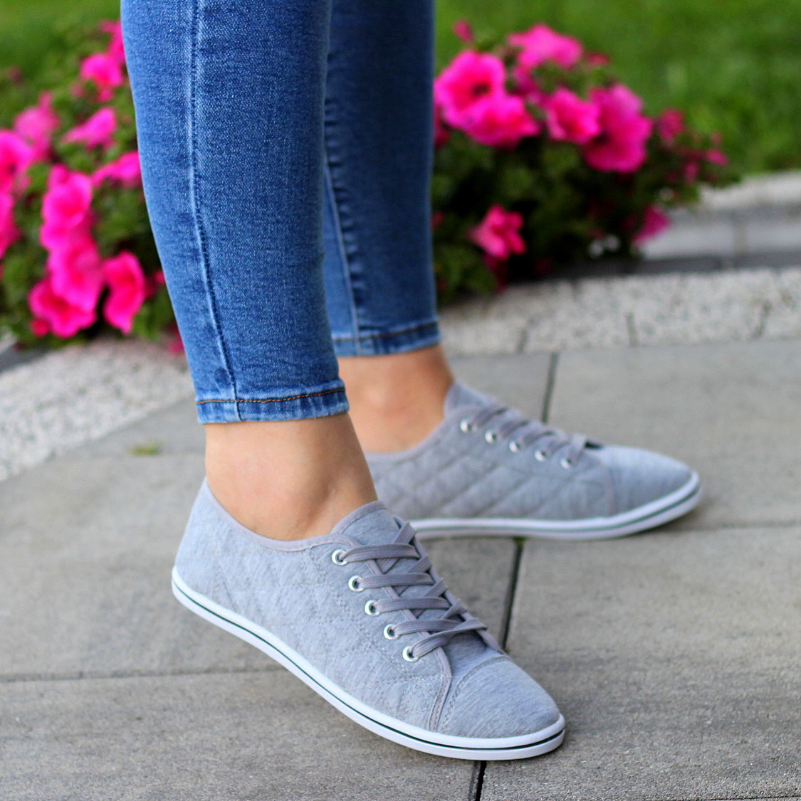 Szare miękkie tenisówki materiałowe slim