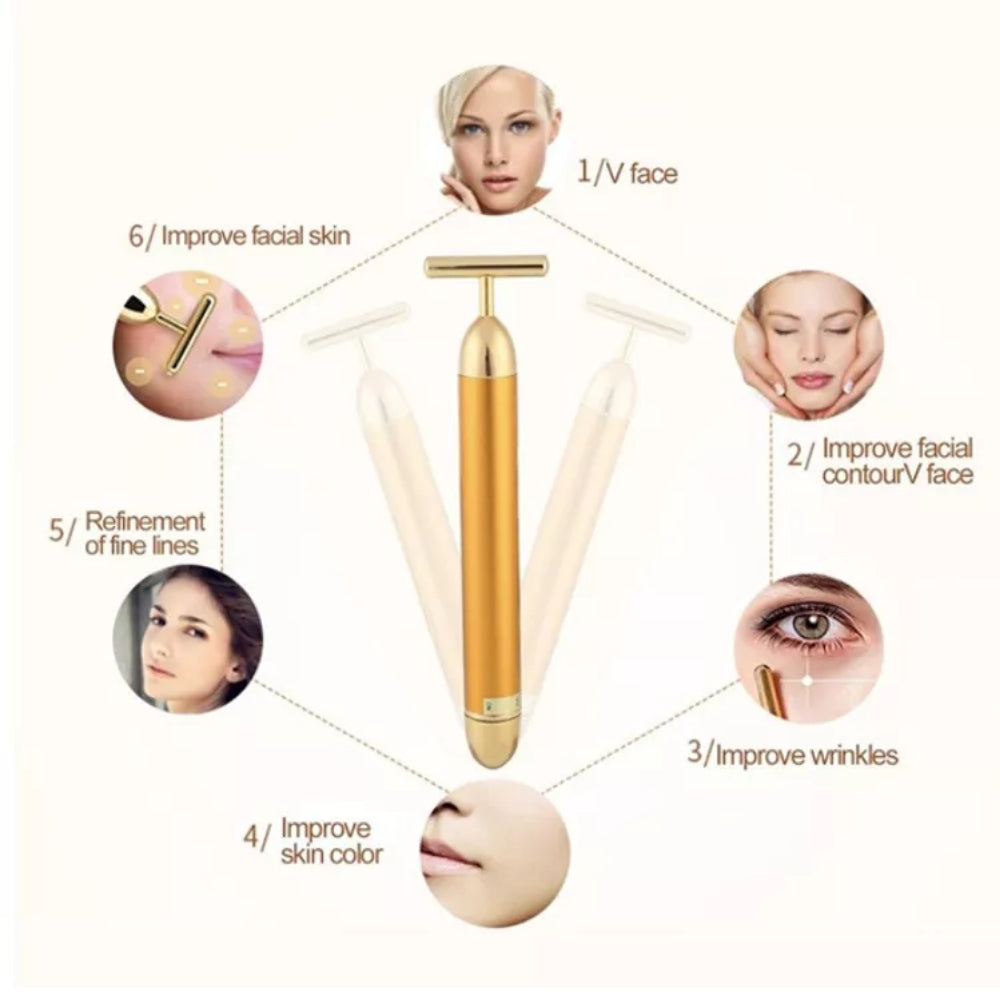 Głowica w kształcie litery T wytwarza łagodne wibracje, które masują twarz i zapewniają efekt terapeutyczny