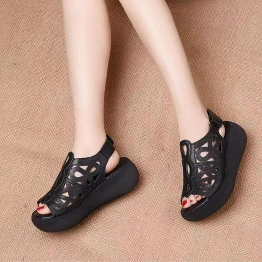 😍Poslední den s 50% slevou😍 - Módní dámské ortopedické kožené sandály s otevřenou špičkou a silným podpatkem