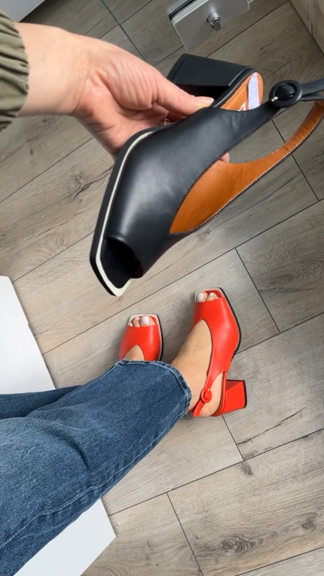 Sandály na hrubém podpatku s rybí špičkou