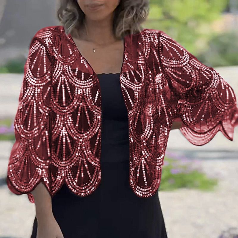 DESIGN: Večerní šátek je navržen s průhledným kardiganem a zdobený flitry, které doplňují tvar ženského těla. Noste ho, abyste ukázali svou nejskromnější a nejkrásnější stránku.