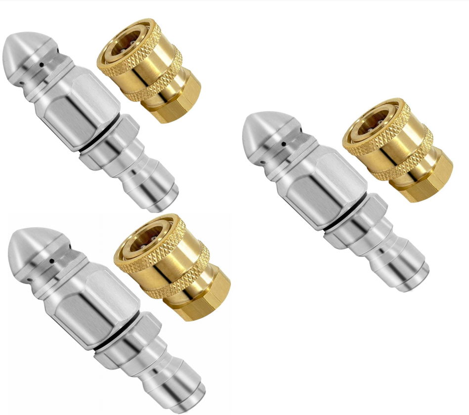 Vysokotlaké čištění - Tato tryska poskytuje bezkonkurenční vysokotlaký čisticí výkon a kompletně odstraňuje odolné ucpání, nečistoty a usazeniny z potrubí. Rozlučte se s pomalým odtokem a ucpáváním; tato tryska zajišťuje, že váš potrubní systém zůstane čistý.