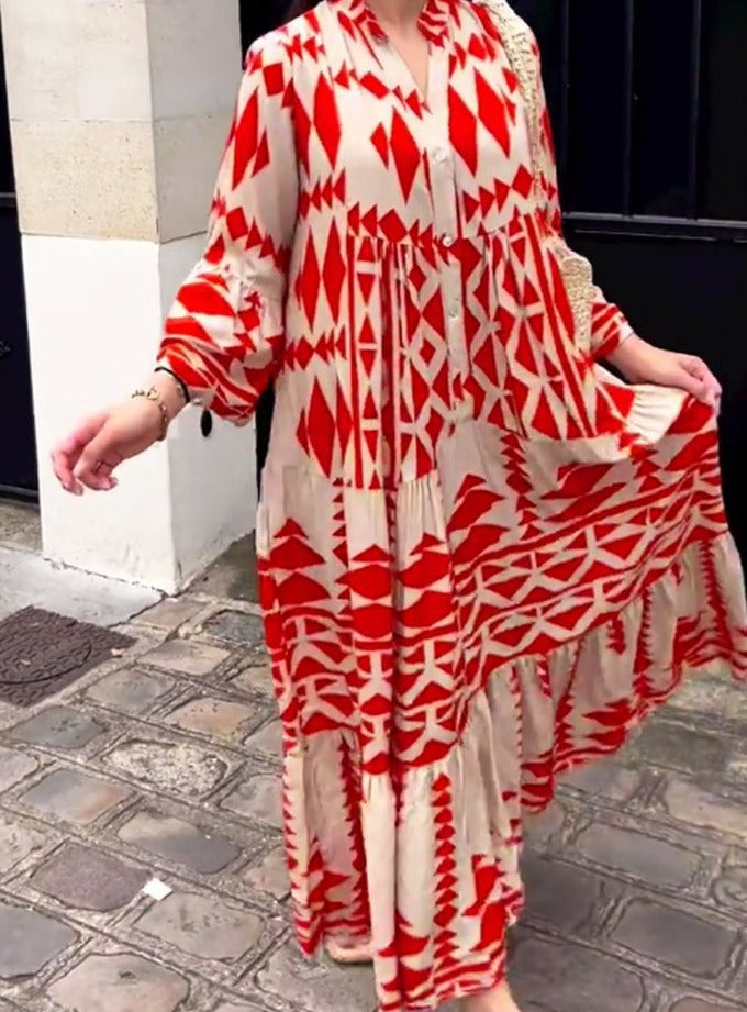 Šaty s dlouhým rukávem pro ženy Košilové šaty s potiskem s dlouhým rukávem