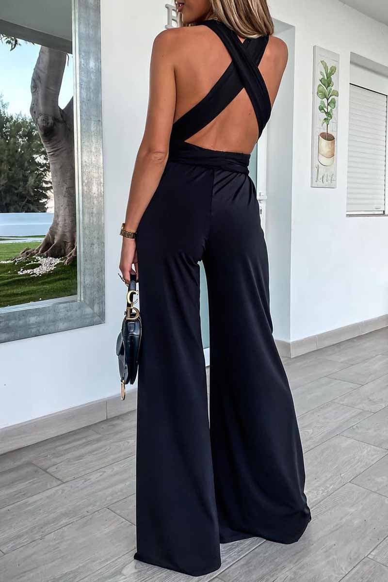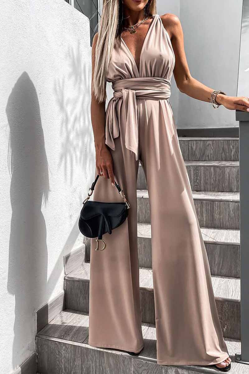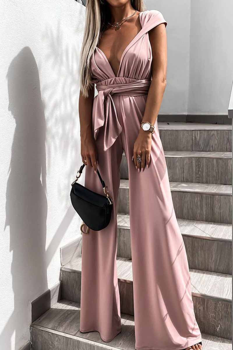 Dámský ležérní jednobarevný šněrovací overal bez rukávů